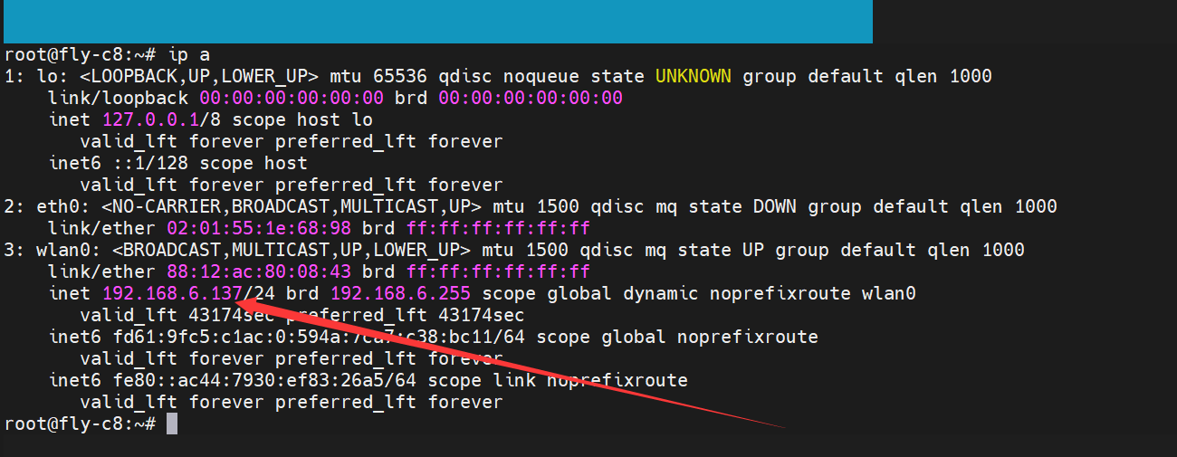 1. 连接好WIFI后,在键盘找打Esc按键按几次推出当前界面,然后输入ip a并且回车