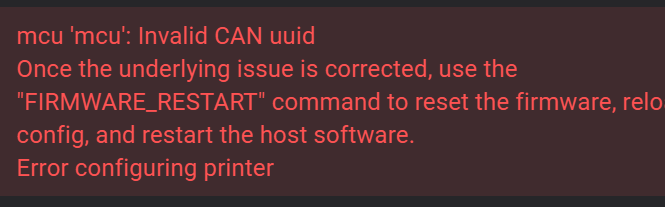 • 出现serialhdl.error: mcu 'xxx': Serial connection closed代表CAN ID没有找到或者填写错误,需要搜索ID并且填写进去