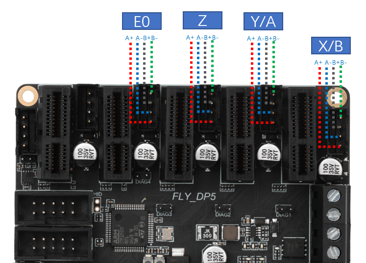 • 对于两相四线步进电机来说,我们不需要知道哪个是A组哪个是B组,主要是确定是一组即可,在配置里面修改电机方向即可