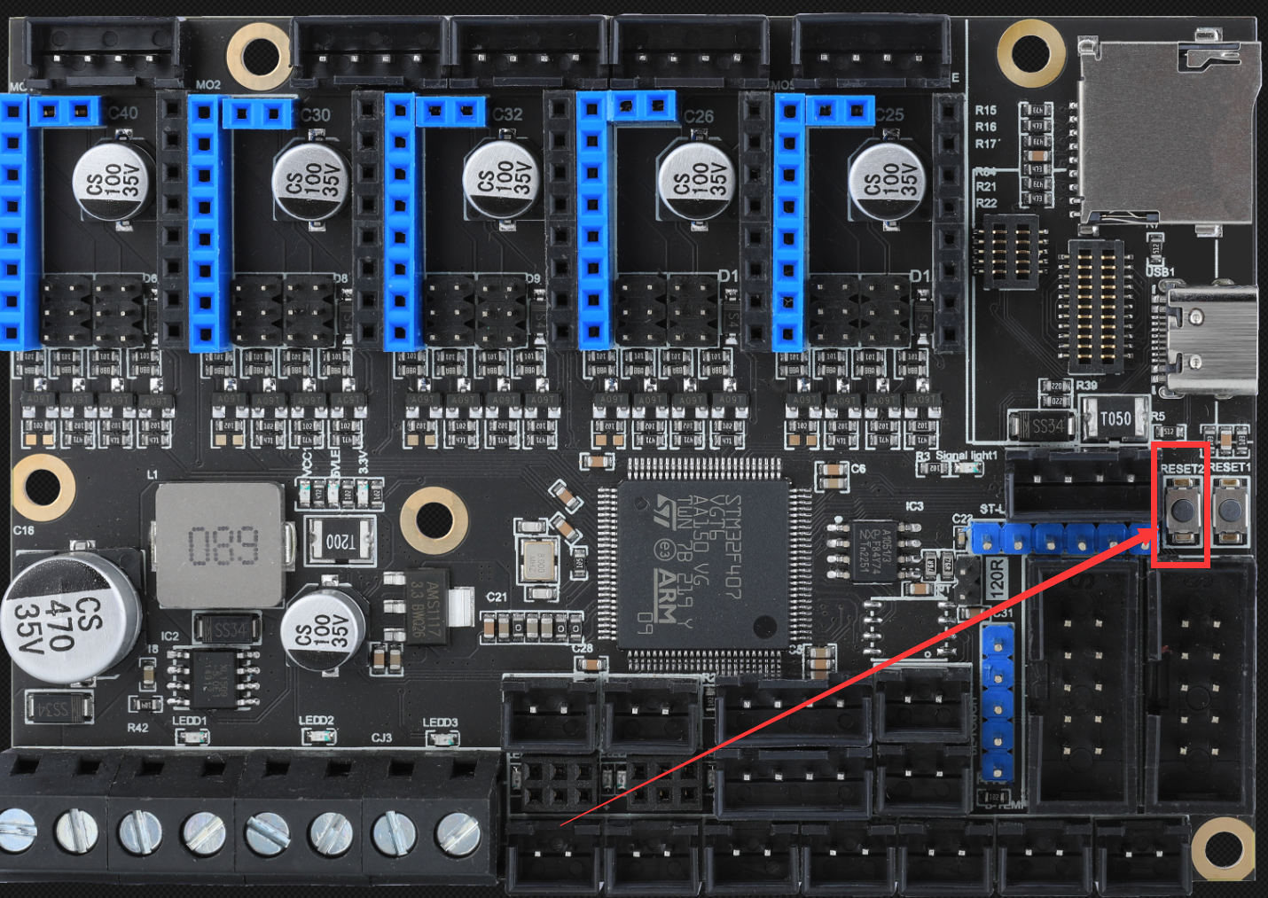 右边为BOOT按键,左边为RESET按键