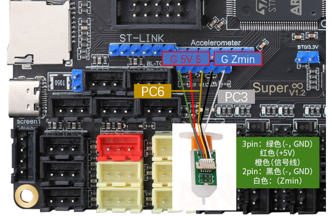 • Klicky为第三方的调平传感器,能够用极低的成本自己在家制作,且性能稳定,性价比高,推荐使用。接线方法如下图所示。