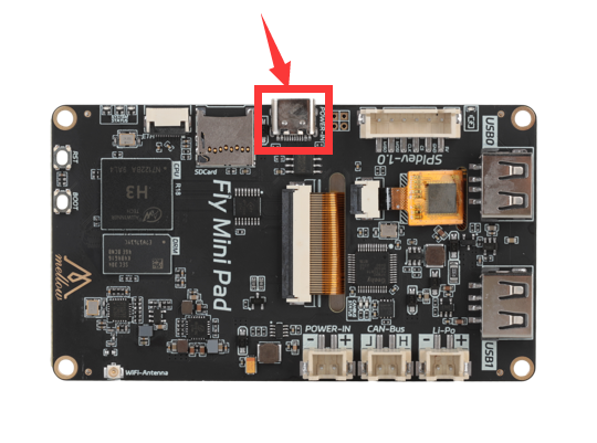 • 使用USB Type-c线材将FLY的上位机与电脑连接