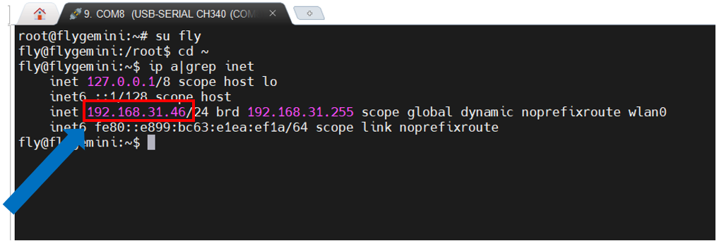 • 如果需要查看IP,在ssh中输入:输入 ip a | grep inet 回车,在返回内容中找到与你路由器同段的IP即可访问