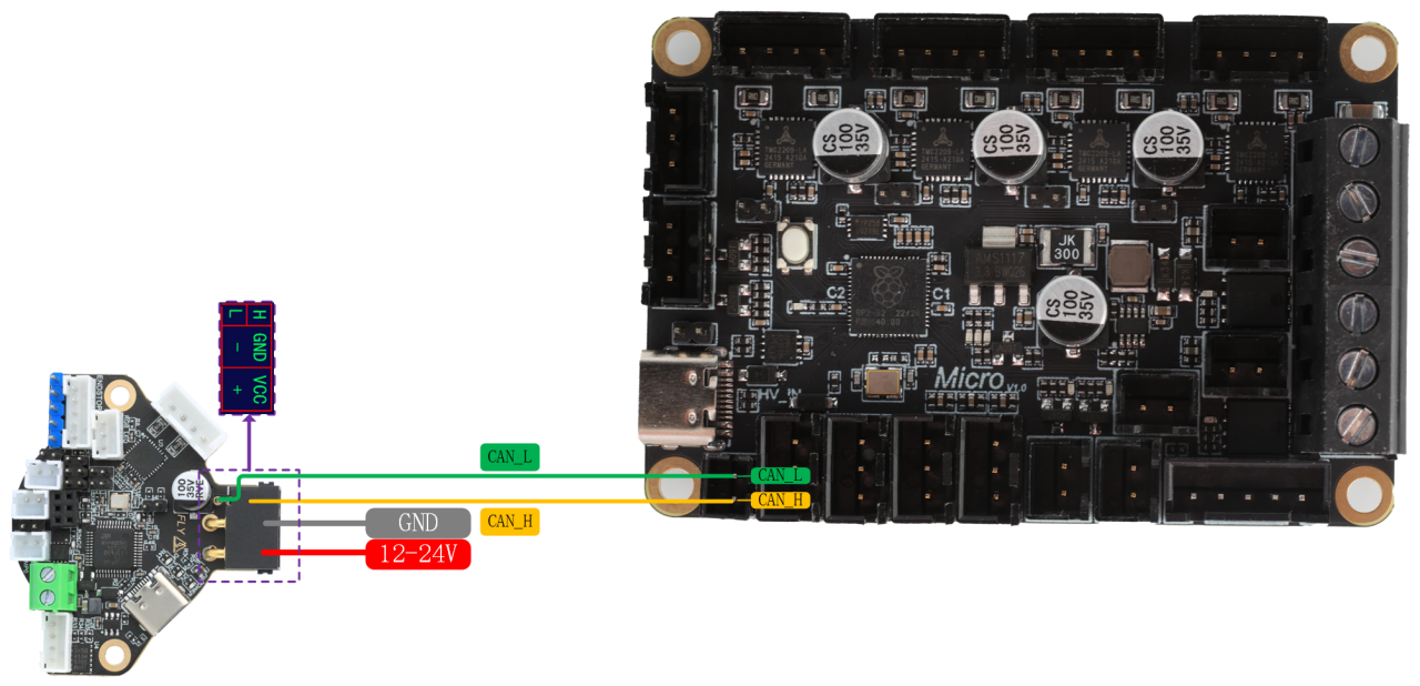 - 请注意工具板电源线不是接到CAN口,是接到12V-24v电源线上
