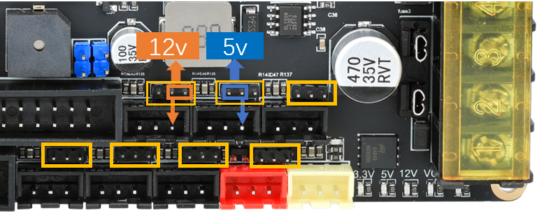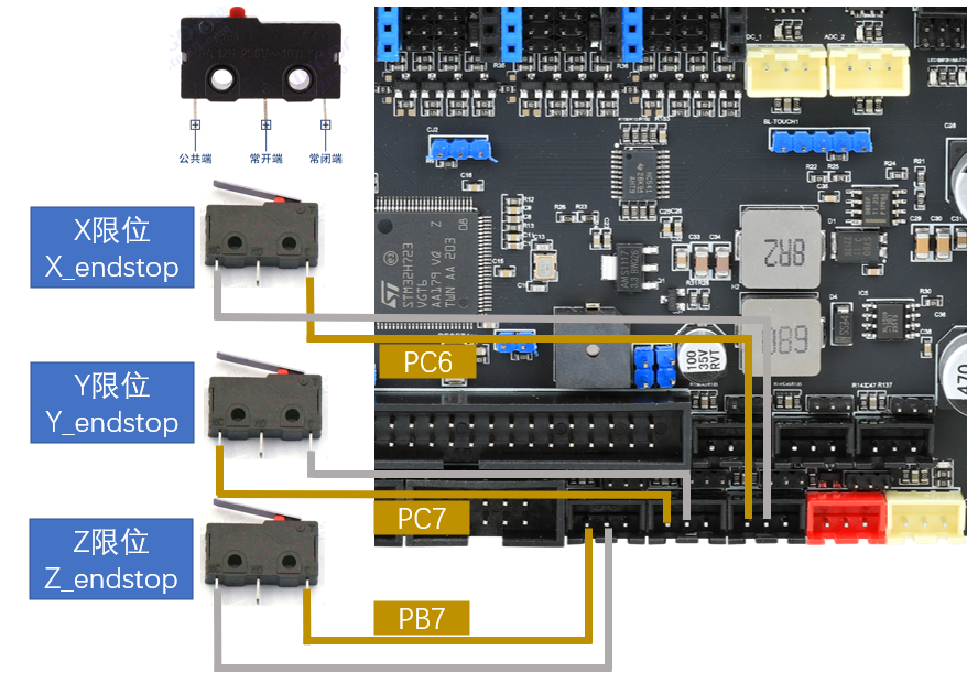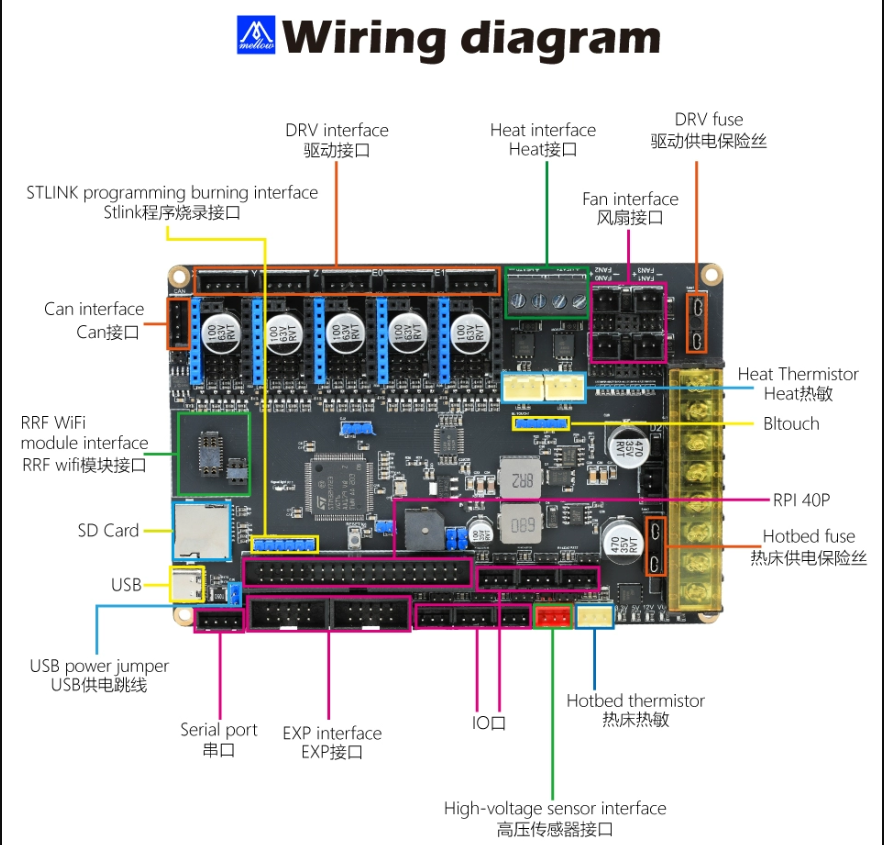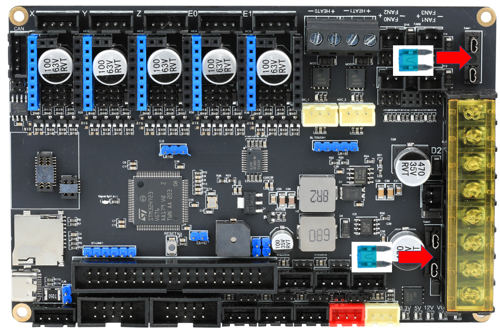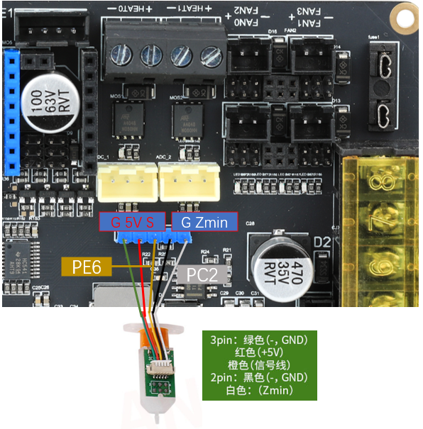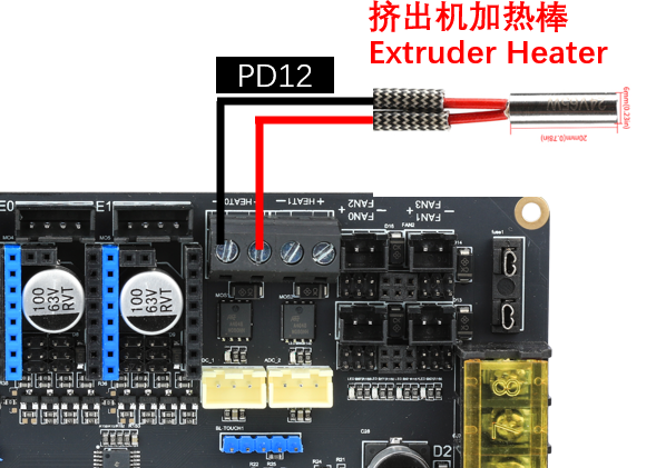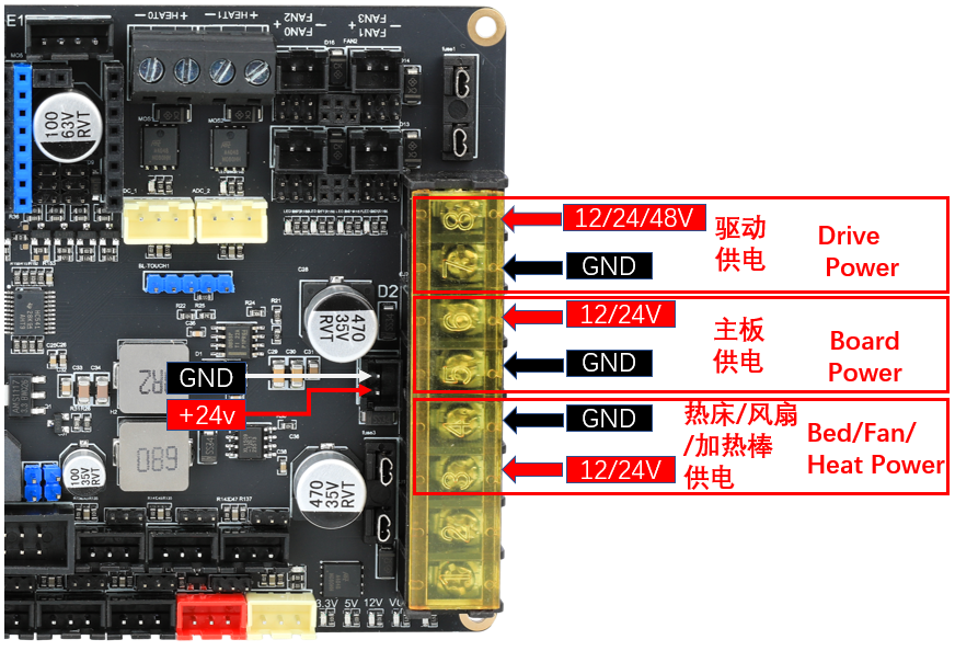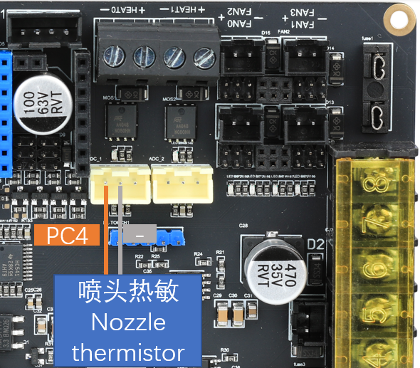 直流热床: 板载MOS接直流热床时请注意使用功率,直流热床最大电流不能超过10A。如果超过10A,建议使用外接MOS模块来使用热床,否则可能会对主板造成不可逆的损伤。