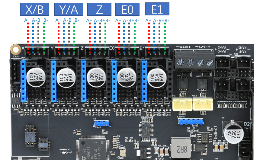 - 对于两相四线步进电机来说,我们不需要知道哪个是A组哪个是B组,主要是确定是一组即可,在配置里面修改电机方向即可