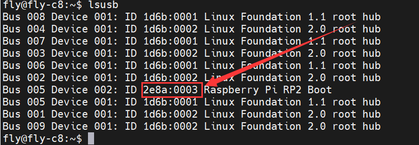 2e8a:0003则代表进入烧录模式