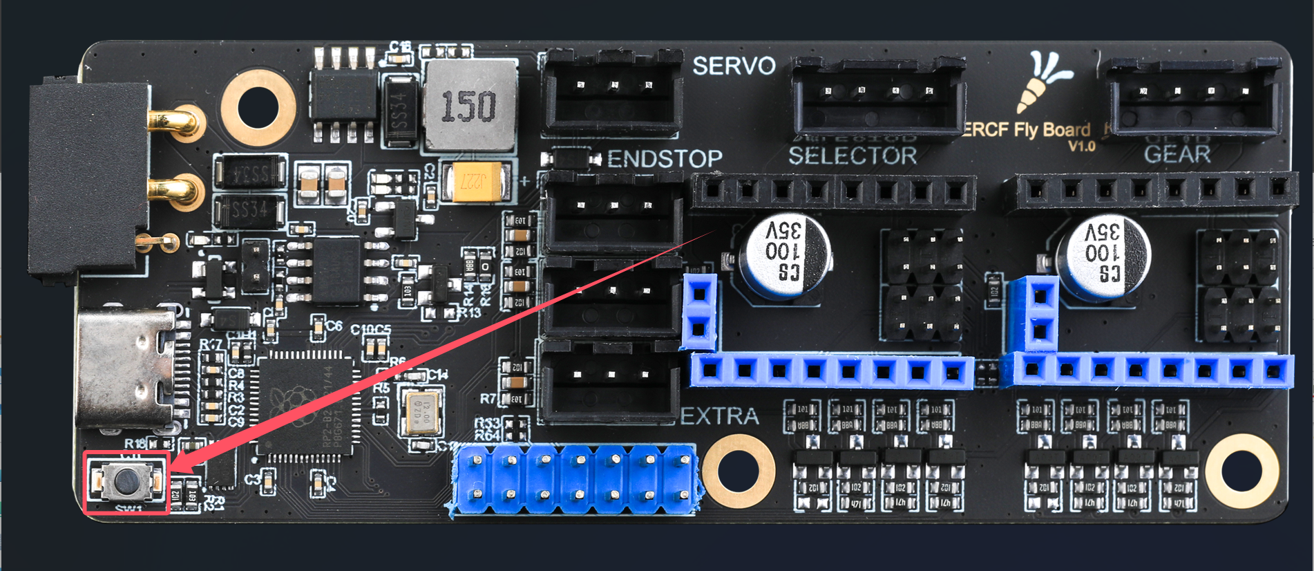- 优点:点两次重置或者快速断电两次即可进入Katapult固件,并且会提前配置的LED闪烁起来,如果没有则不闪烁
