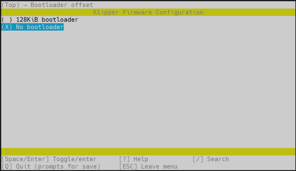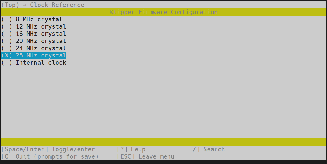 cd ~/klipper && rm -rf ~/klipper/.config && rm -rf ~/klipper/out && make menuconfig