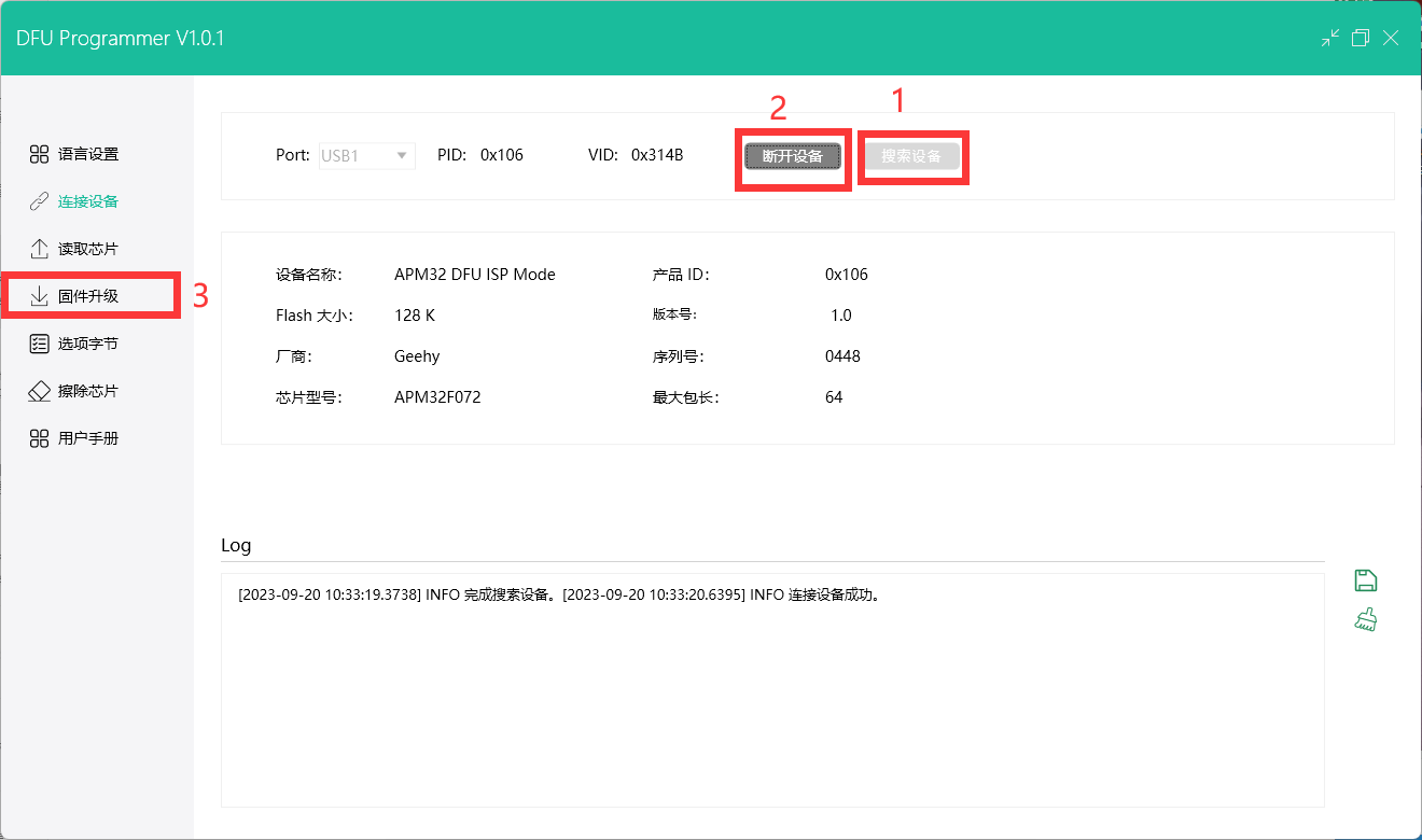 - 主板完全断电情况下,按着BOOT按键然后将带有数据传输的数据线一头接主板一头接你设备