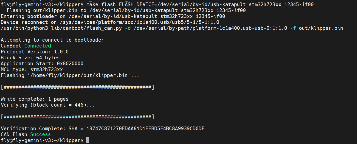 使用Katapult固件可以方便以后直接通过SSH更新固件,无需在进入DFU烧录固件