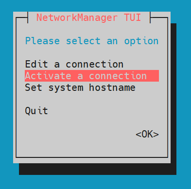 1. 在SSH软件输入nmtui命令后回车,会出现下图所示界面