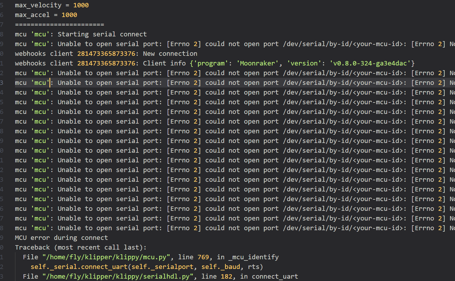 • 出现[Errno 2]代表没有搜索ID并且添加到printer.cfg里面