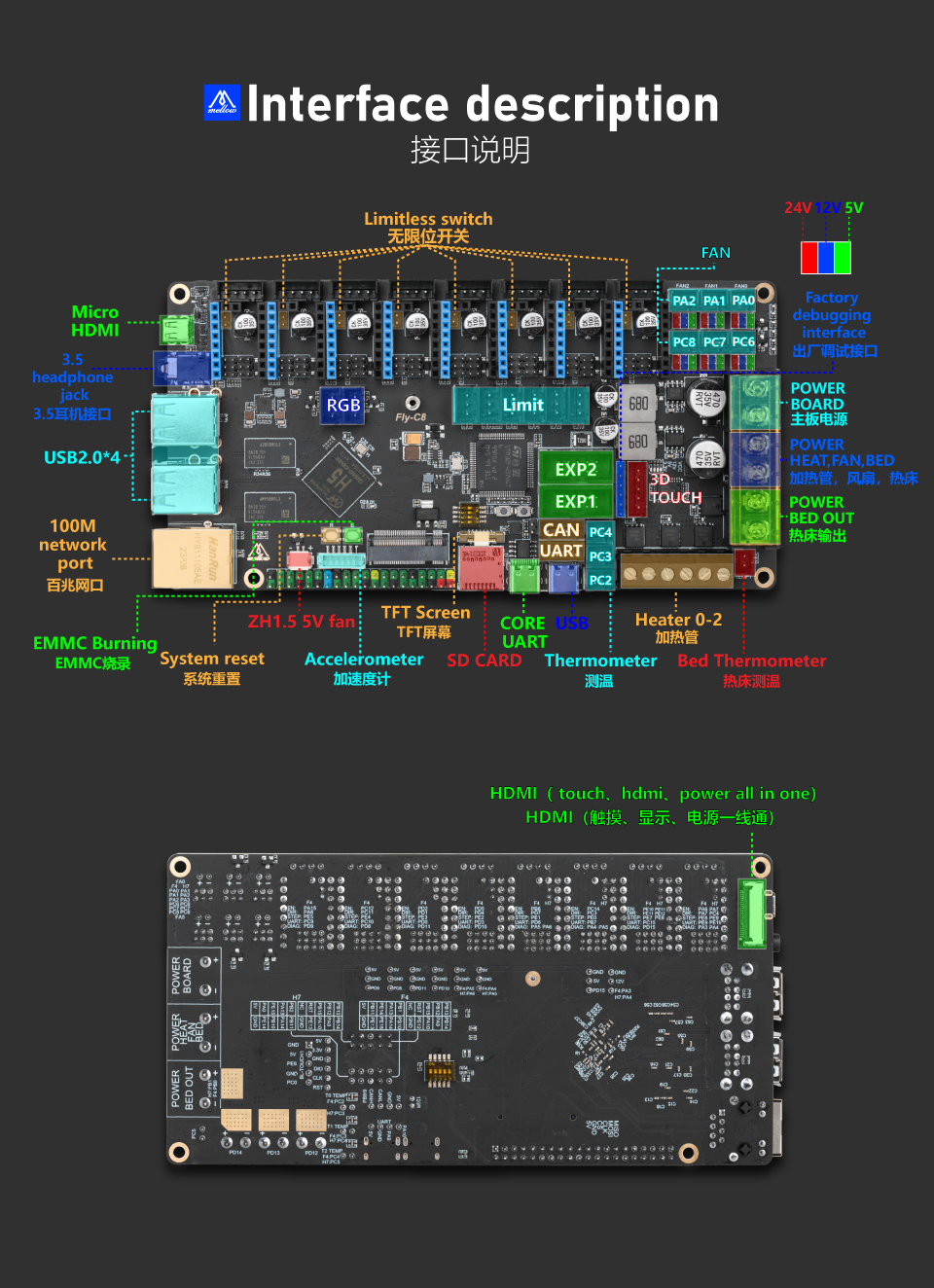warningVoron Tap不建议接 24V ,某些版本使用 24V 有一定概率会导致Tap传感器烧坏,这并非Fly产品的问题,是Voron Tap的设计缺陷,请悉知!!!