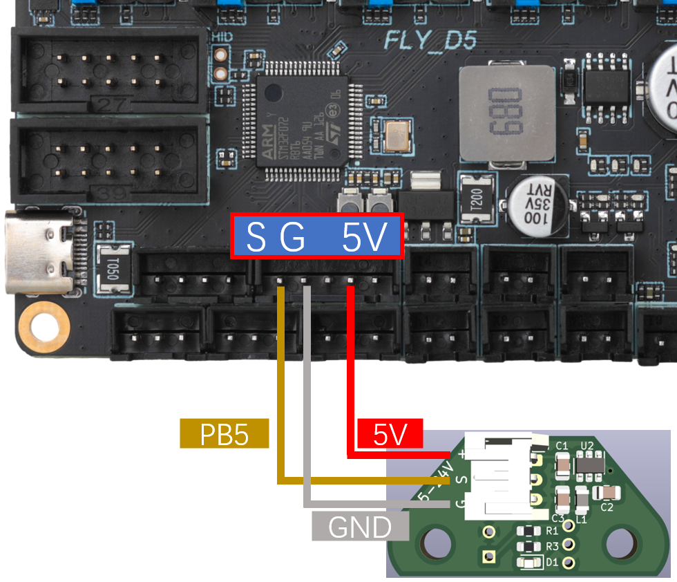 注意:5V和GND不能接反,否则会损坏Tap传感器甚至主板!!!