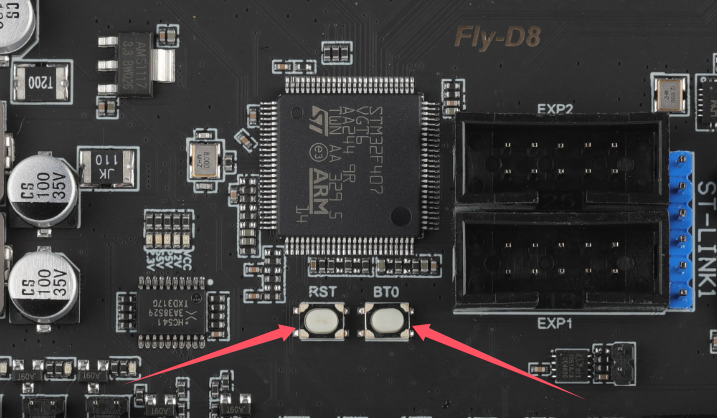 • 优点:点两次重置或者快速断电两次即可进入Katapult固件,并且会提前配置的LED闪烁起来,如果没有则不闪烁