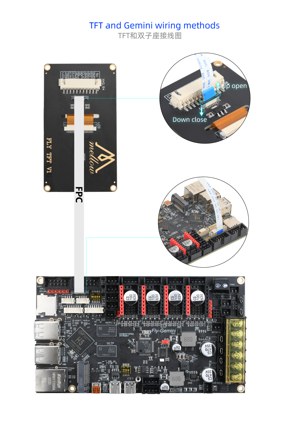 MotherboardFLY-Gemini Series BoardsFLY-Gemini v3屏幕接线与配置屏幕接线与配置 TFT接线HDMI接线 需要在FLY TOOLS中按下方配置屏幕并且打开KS FLY-Pi TFT屏接线 需要在FLY TOOLS中按下方配置屏幕并且打开KS 需要使用FPC转HDMI小板 请注意需要接上带有数据传输功能type-c到模块上