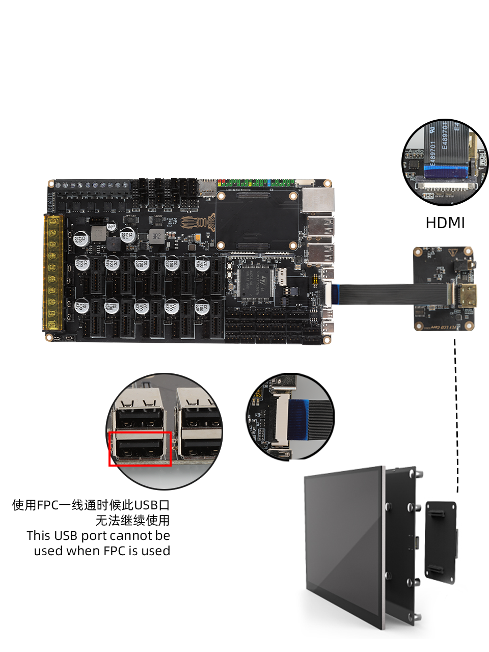 - 安装屏幕时,请注意不要带电拔插注意屏线方向,以免造成损坏。
