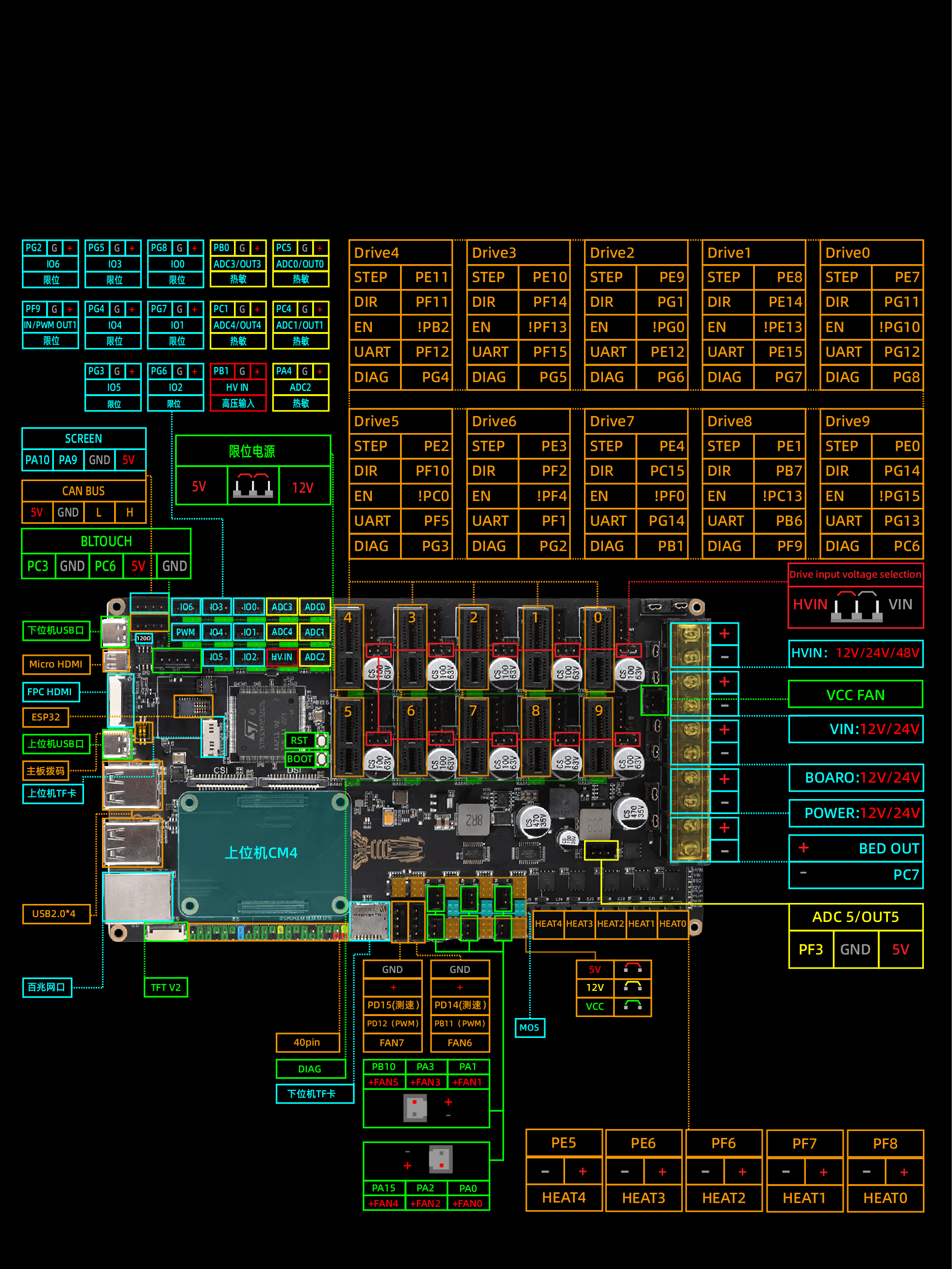 MotherboardFLY-Pro Series BoardsFLY-Pro-X10主板接线On this pagePRO X10 主板参考接线 注意事项由于图片分辨率太高,在网页上浏览无法看清,请将鼠标光标放在接线图上方,单击右键,选择图片另存为 ,将图片保存到桌面再查看!!! 上位机接口说明 主板接线说明
