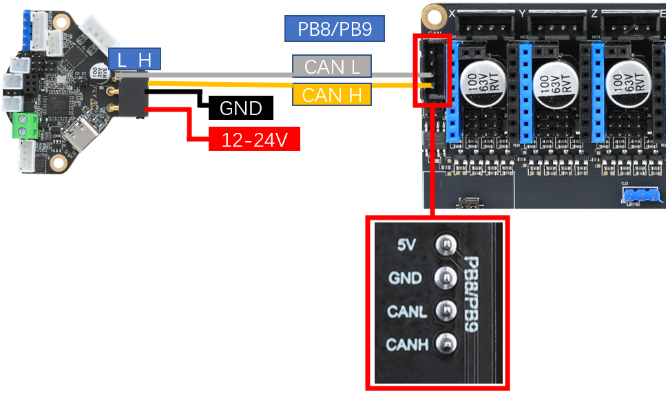 • 请注意工具板电源线不是接到CAN口,是接到12V-24v电源线上