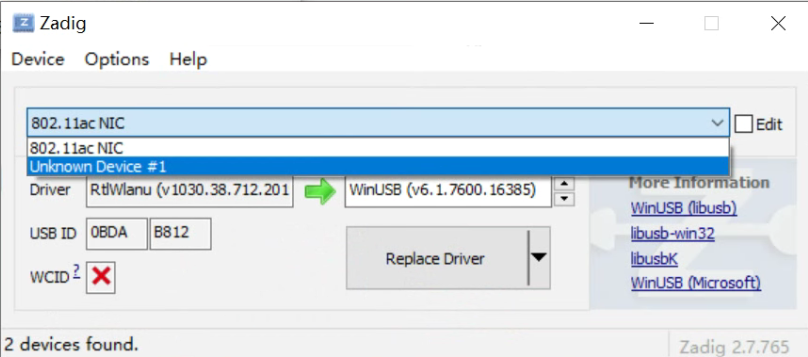 Zadig,顶部菜单栏Options里勾选List All Devices