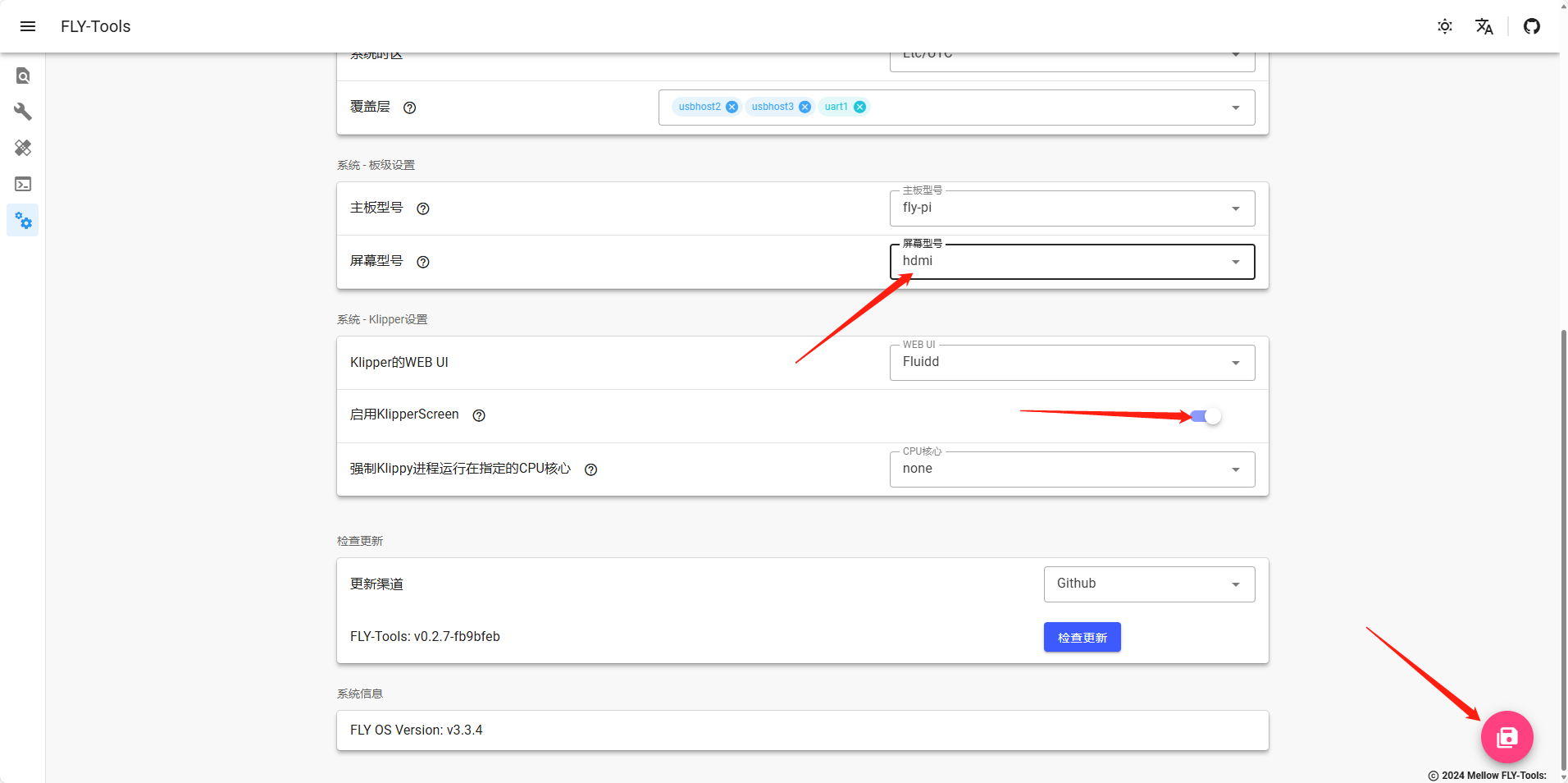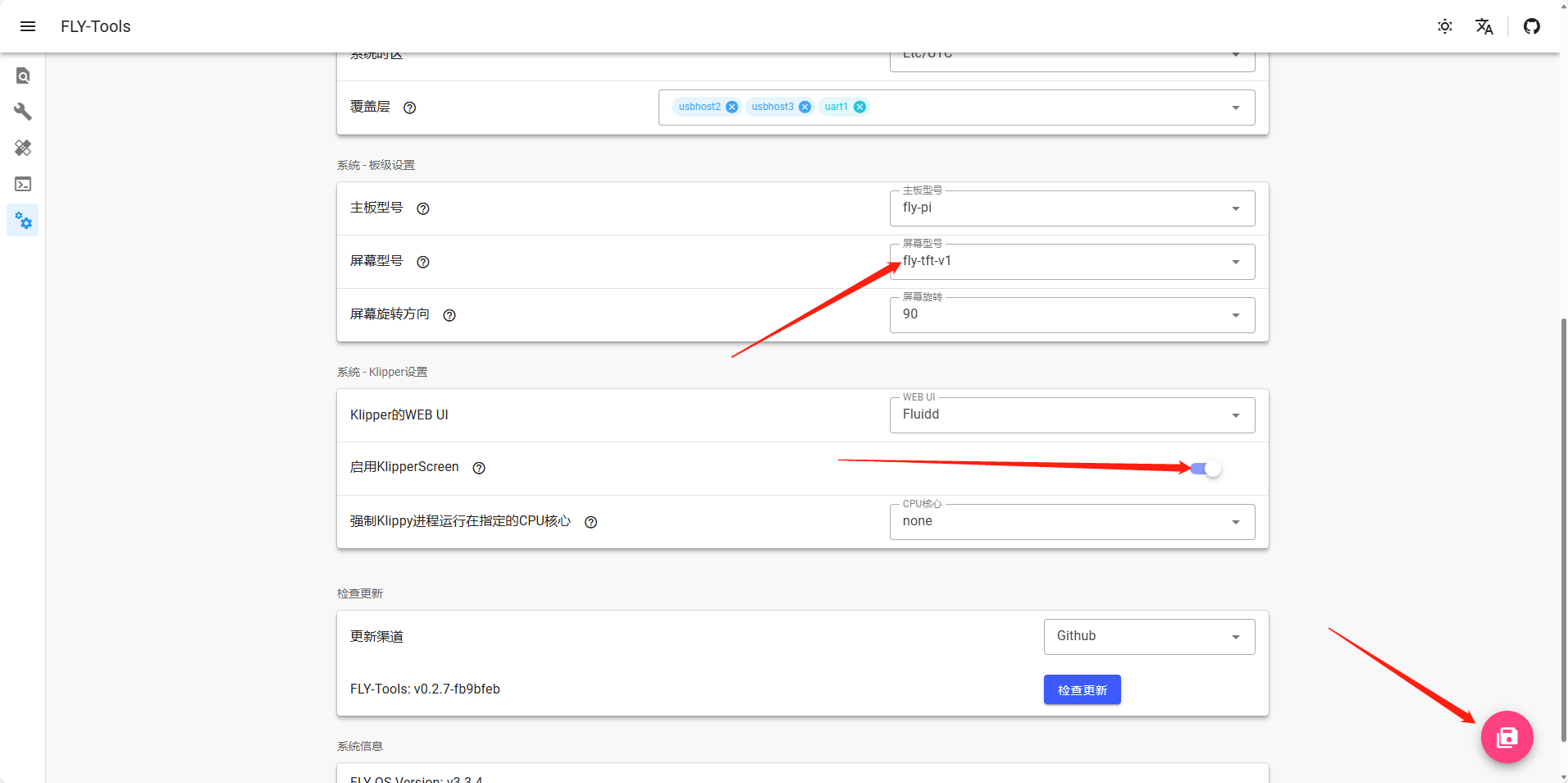 • 需要在FLY TOOLS中按下方配置屏幕并且打开KS