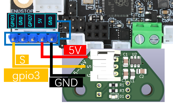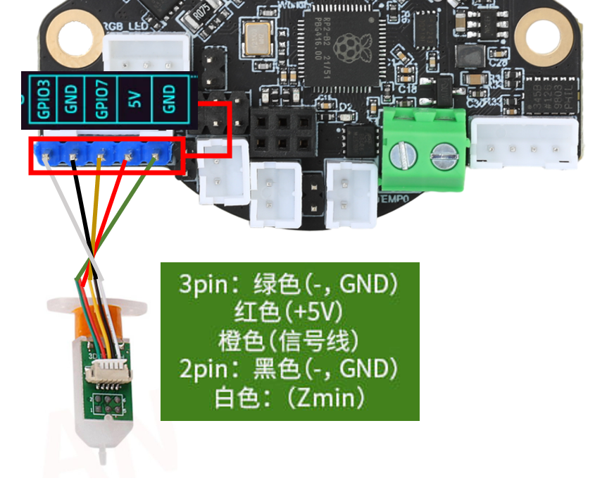 Klicky 为第三方的调平 传感器,能够用极低的成本自己在家制作,且性能稳定,性价比最高,推荐使用。接线方法如下图所示。