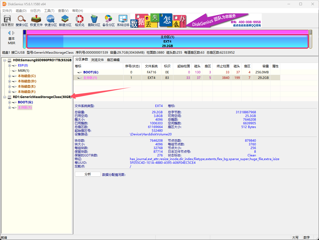 DiskGenius.exe - 如果正常则会显示你需要备份的磁盘