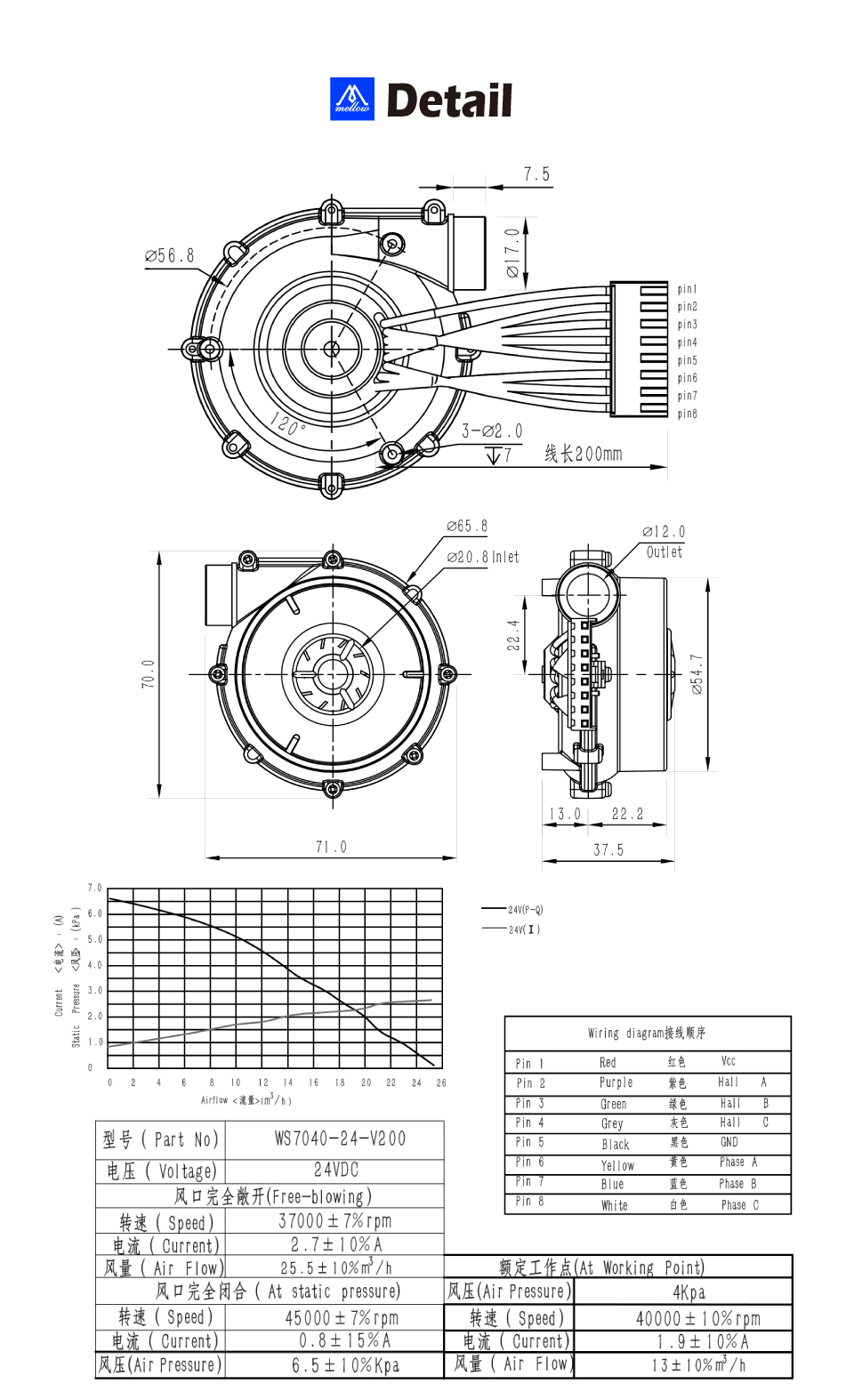 模块 & 扩展板类FLY-7040鼓风机简介Sur cette pageWS 7040 产品特点 最大转速:45000 最大流量:14.7CFM 可选配件:进气过滤器,降低运行噪音,防止异物进入风机损坏扇叶,使套件运行更加安静平稳 产品规格 注意事项 注意事项 请注意,风扇口需要避免进异物导致损伤扇叶 请注意,风扇最大输入电源是24V