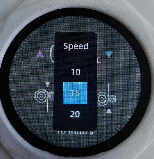 7. 长按:进入上图2中的挤出速度设置,上下滑动选择挤出速度,单位mm/s,选择后单击周围空白区域退出
