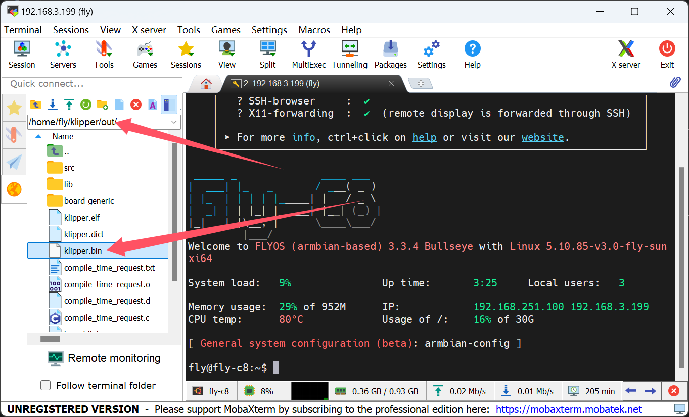 3. 使用MobaXterm_Personal左边文件目录找到klipper选择然后找到out打开