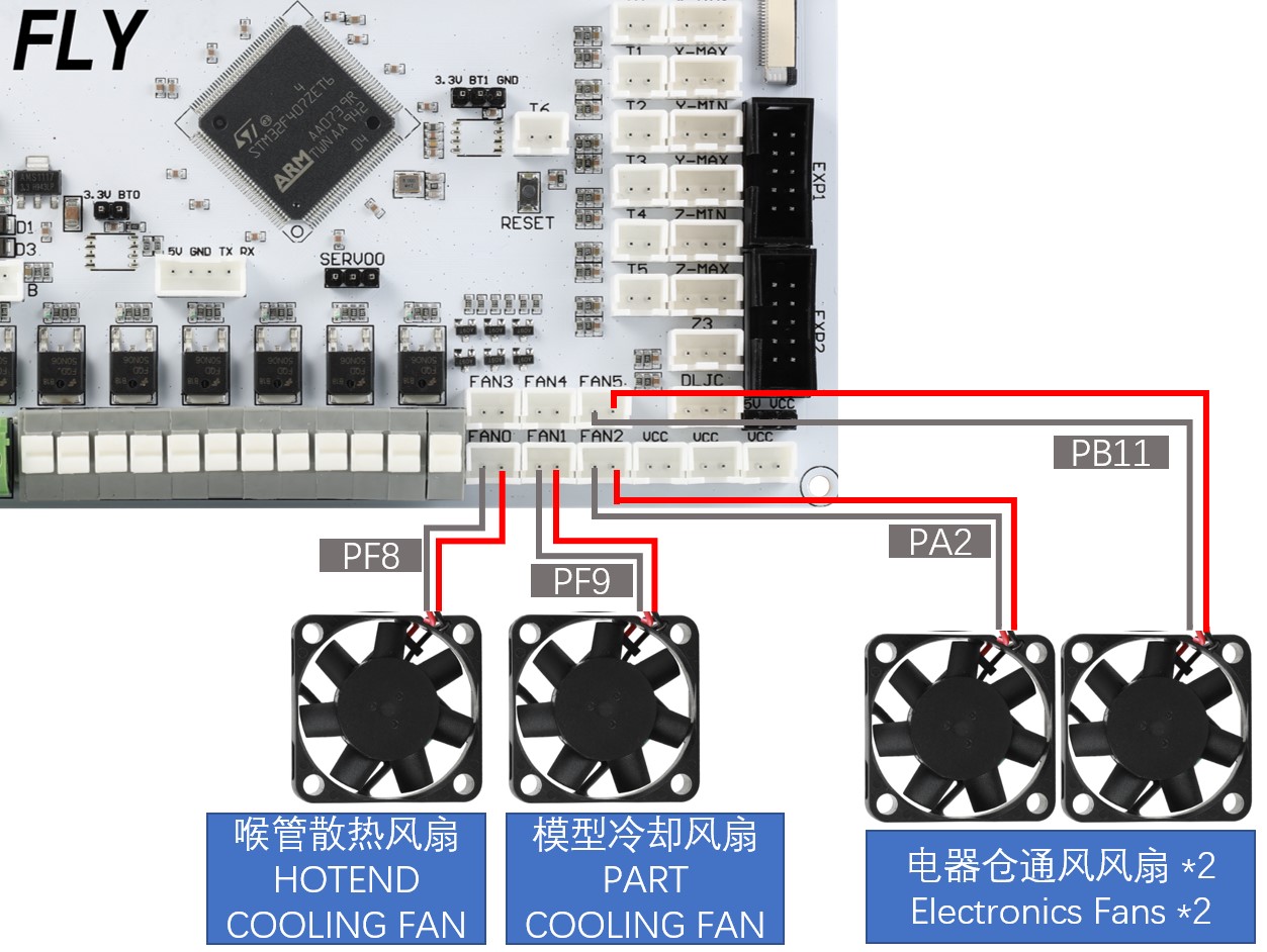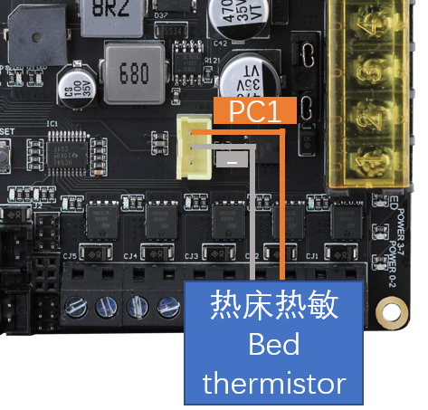 直流热床: 板载MOS接直流热床时请注意使用功率,直流热床最大电流不能超过10A。如果超过10A,建议使用外接MOS模块来使用热床,否则可能会对主板造成不可逆的损伤。