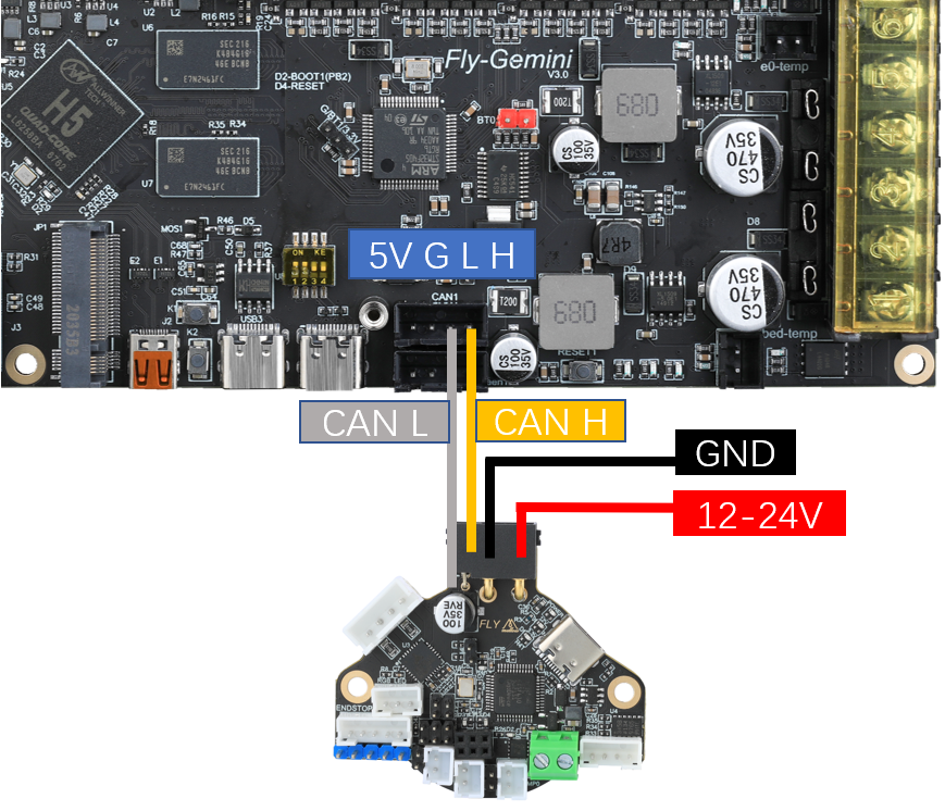 • 请注意工具板电源线不是接到CAN口,是接到12V-24v电源线上