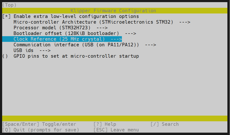 cd ~/klipper && rm -rf ~/klipper/.config && rm -rf ~/klipper/out && make menuconfig -