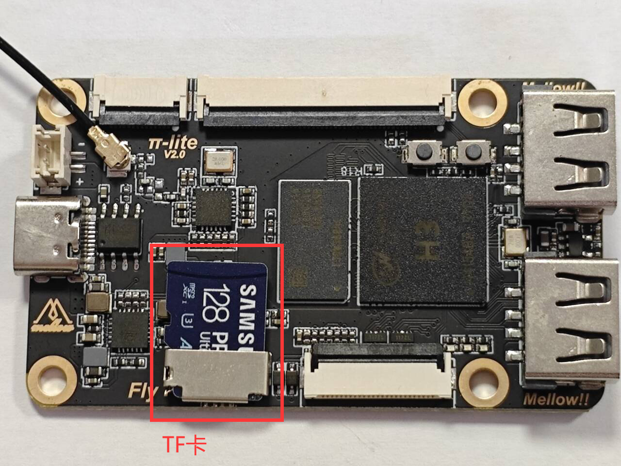 • 在将系统烧录到TF卡后,需要将TF卡接到LITE 2此处,否则系统无法启动