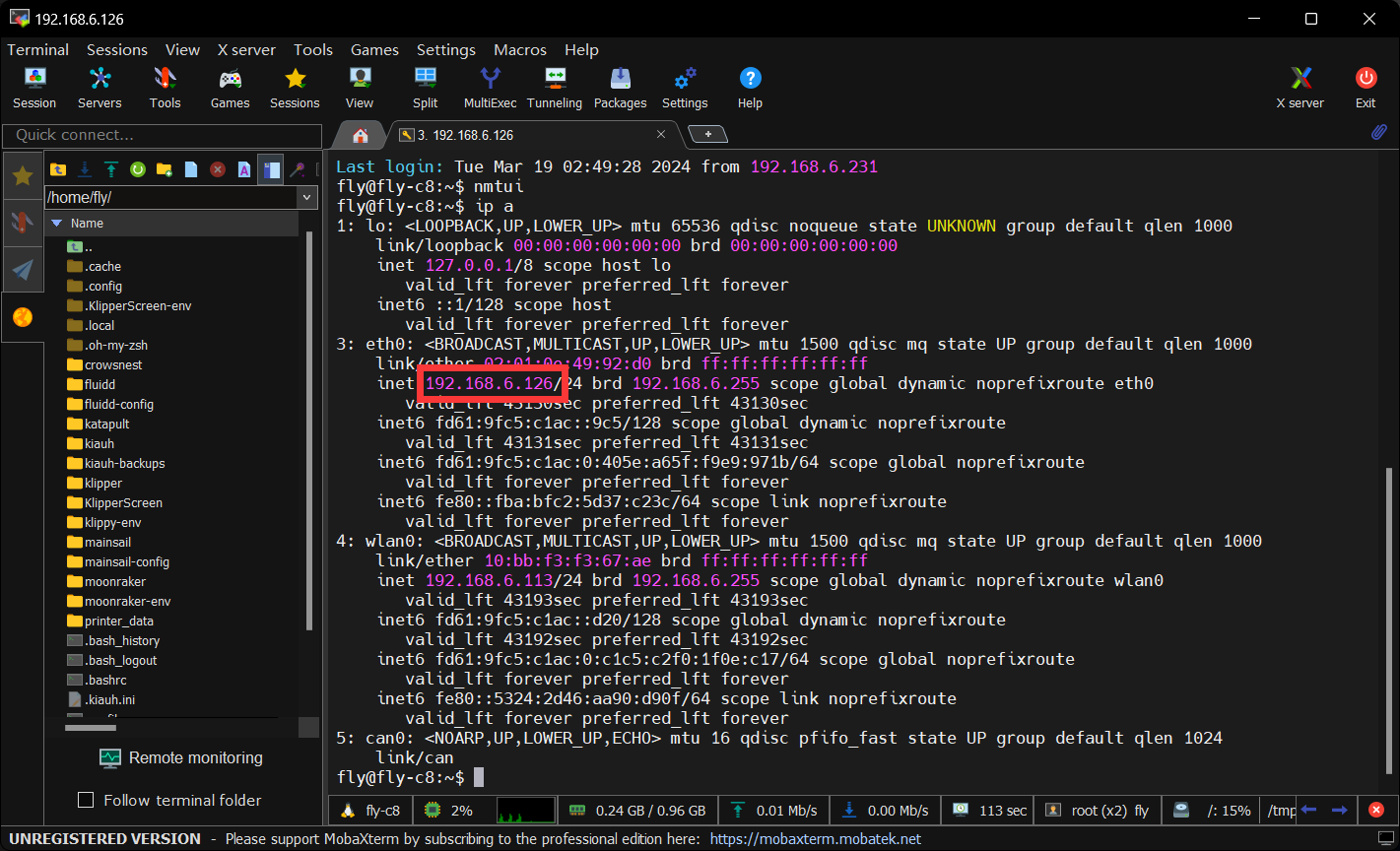 • 按ESC键退出,返回命令行界面,输入ip a,图中192.168.2.126即为上位机的IP地址