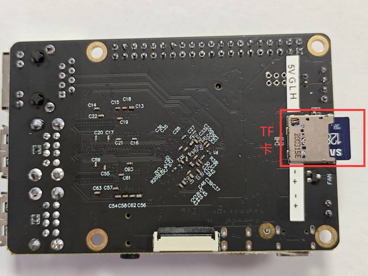 - 在将系统烧录到TF卡后,需要将TF卡接到PI V2此处,否则系统无法启动