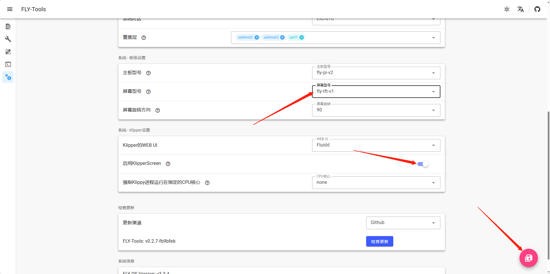 上位机类FLY-Pi-V2屏幕接线与配置屏幕接线与配置 TFT接线HDMI接线 需要在FLY TOOLS中按下方配置屏幕并且打开KS FLY-Pi V2 TFT屏接线 需要在FLY TOOLS中按下方配置屏幕并且打开KS 使用FPC转HDMI模块 请注意需要接上带有数据传输 功能type-c到模块上 FLY-Pi v2 HDMI屏幕接线
