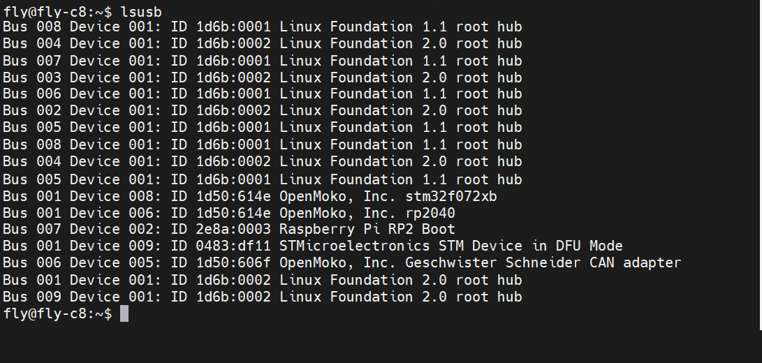 • 如果是USB桥接CAN固件在lsusb后应该出现1d50:606f