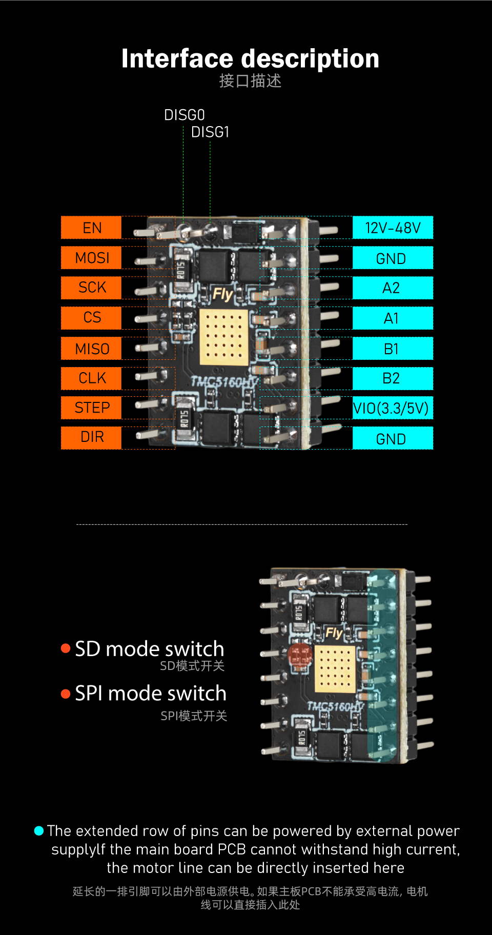 • FLY驱动的SPI脚是在左边往下数第四个脚,CS脚就是SPI脚。如果主板不是对应脚位则无法使用SPI