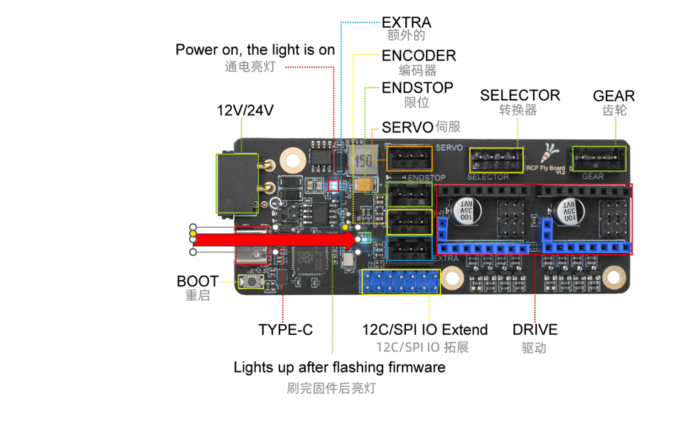 • 烧录固件前使用XT30数据线将工具板连接到UTOC或者刷了桥接固件的主板,下方是参考接线图