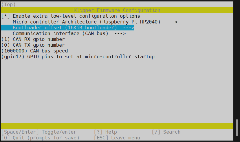 cd ~/klipper && rm -rf ~/klipper/.config && rm -rf ~/klipper/out && make menuconfig -