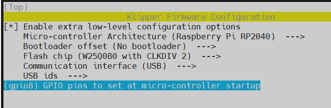 cd ~/klipper && rm -rf ~/klipper/.config && rm -rf ~/klipper/out && make menuconfig