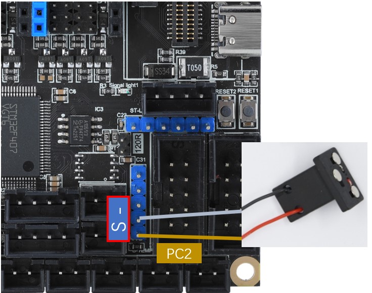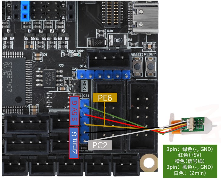 • Klicky为第三方的调平传感器,能够用极低的成本自己在家制作,且性能稳定,性价比高,推荐使用。接线方法如下图所示。