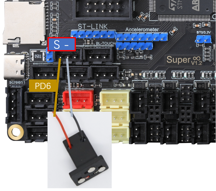 • Klicky为第三方的调平传感器,能够用极低的成本自己在家制作,且性能稳定,性价比高,推荐使用。接线方法如下图所示。