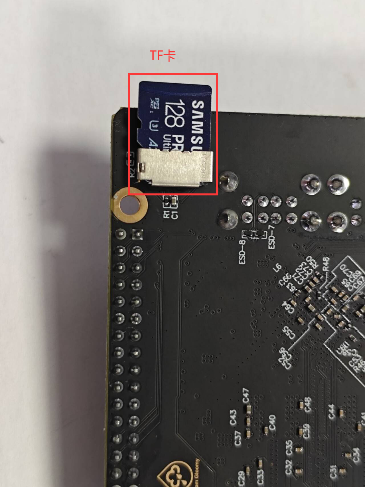 • 在将系统烧录到TF卡后,需要将TF卡接到PI 此处,否则系统无法启动