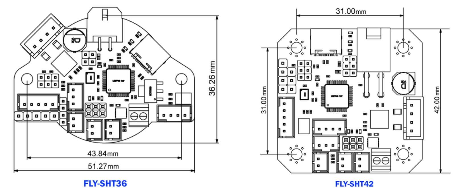 - 外观尺寸:51.27mm36.26mm(SHT36),42mm42mm(SHT42)